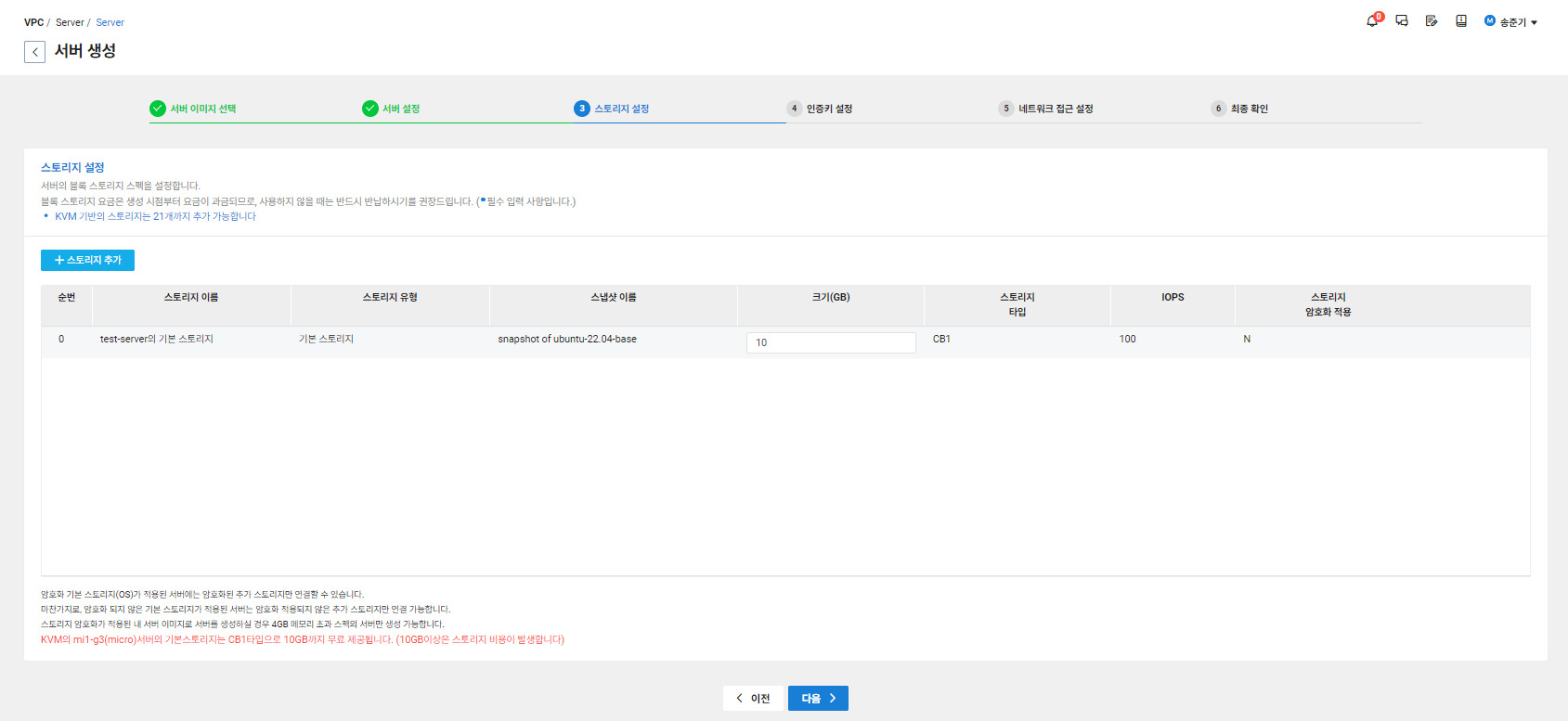 우린 무료서버를 이용 해야 하니 크기는 10GB 그대로 다음을 눌러준다.