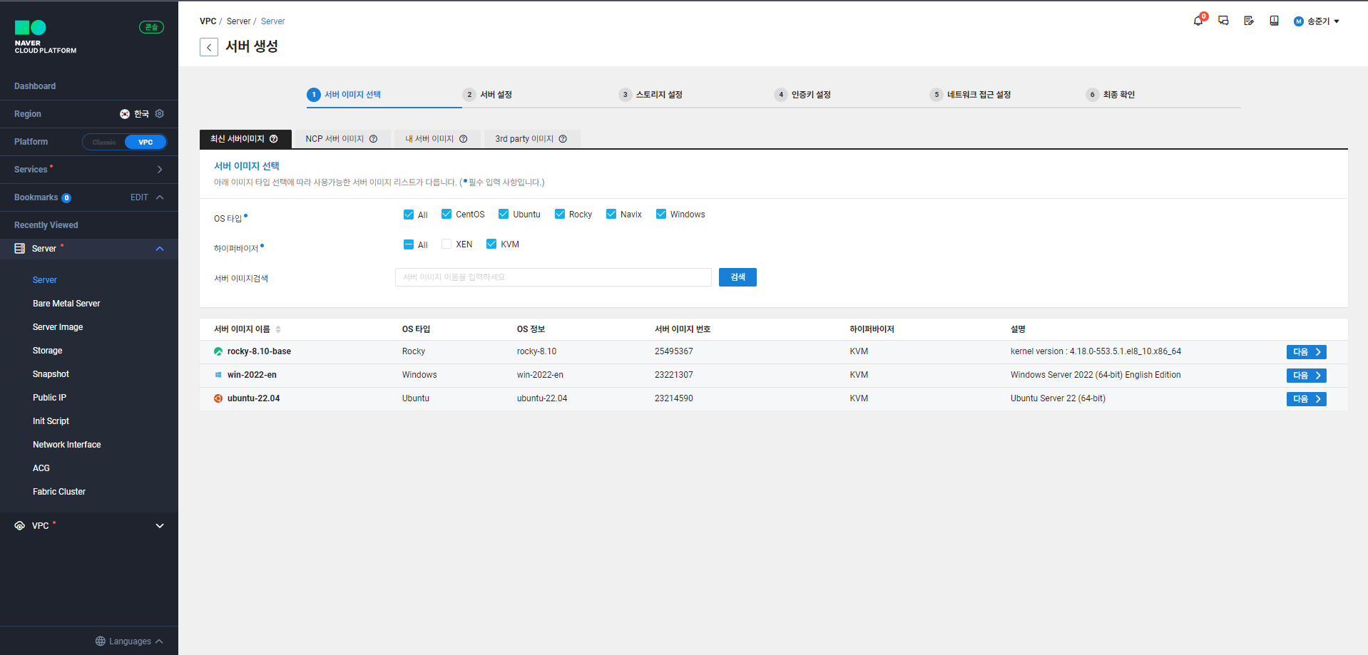 - 콘솔로 들어가 Server, VPC 탭 활성화